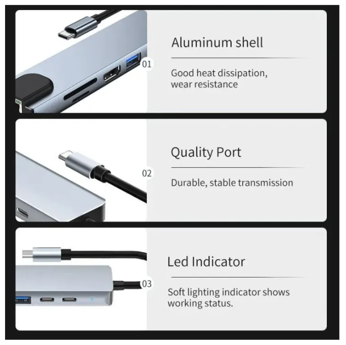 Product name: 8 in 1 USB-Hub with RJ45